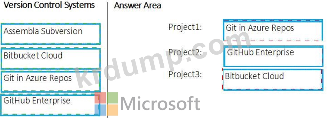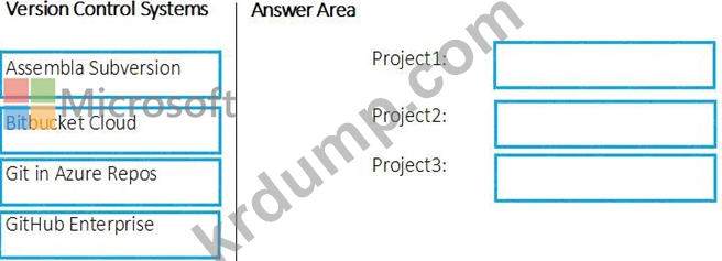 각 프로젝트에 어떤 버전 관리 시스템을 권장해야 합니까? 응답하려면 적절한 버전 제어 시스템을 올바른 프로젝트로 드래그하십시오. 각 버전 제어 시스템은 한 번, 두 번 이상 또는 전혀 사용되지 않을 수 있습니다. 콘텐츠를 보려면 창 사이의 분할 막대를 드래그하거나 스크롤해야 할 수 있습니다.