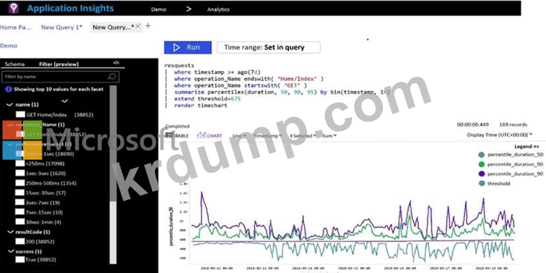 다음 전시회에 표시된 Application Insights 로그 쿼리가 있습니다.