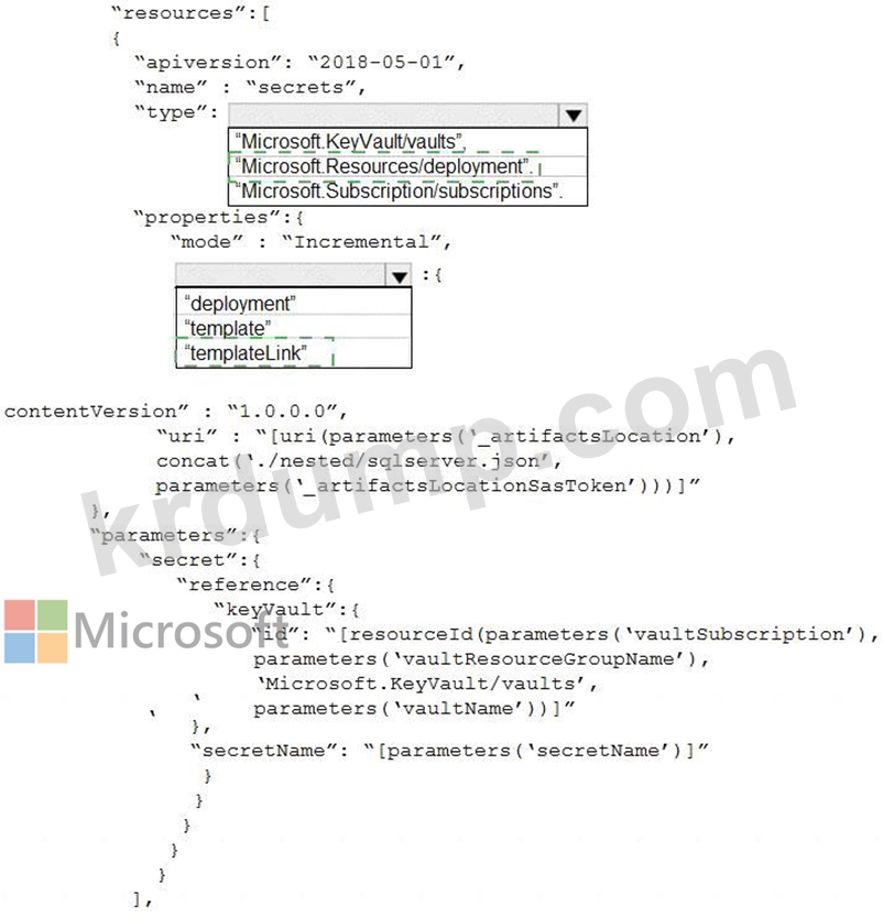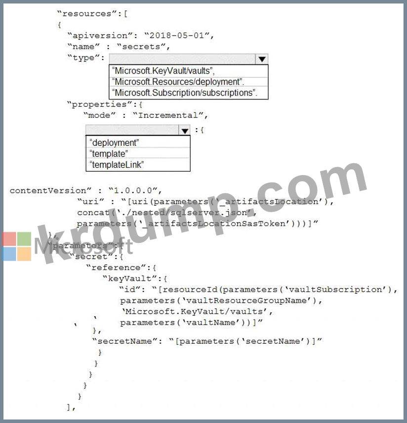 템플릿은 Azure Key Vault에 저장된 비밀을 참조합니다.