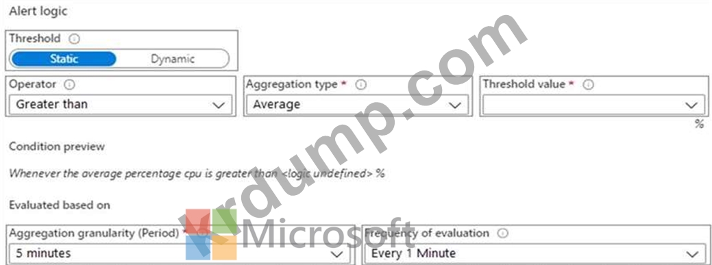 VM1에 대한 경고를 구성해야 합니다. 솔루션은 기술 요구 사항을 충족해야 합니다.
