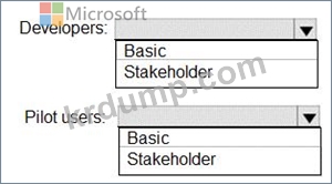 You need to identify which access levels are required to ensure that developers can request and gather feedback from the pilot users. The solution must use the principle of least privilege.