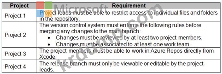 Your company has four projects. The version control requirements for each project are shown in the following table.