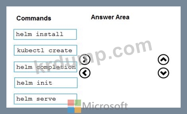 Which three commands should you recommend be run m sequence? To answer, move the appropriate commands from the list of commands to the answer area and arrange them in the correct order.