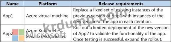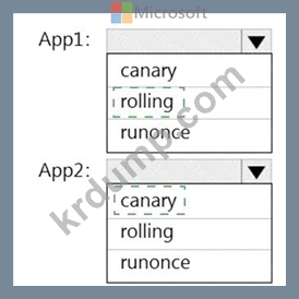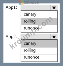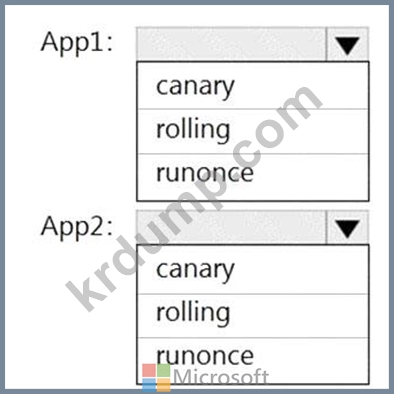 각 앱에 대해 YAML 전략 값을 구성해야 합니다. 솔루션은 앱 다운타임을 최소화해야 합니다.
