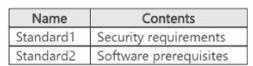 * 모든 신규 파이프라인의 첫 번째 단계에 Standard2에 정의된 소프트웨어 필수 구성 요소가 포함되어 있는지 확인하세요.