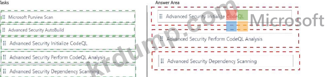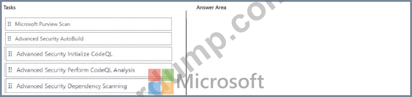 파이프라인은 어떤 세 가지 작업을 순서대로 수행해야 할까요? 답하려면 작업 목록에서 해당 작업을 답변 영역으로 옮겨 올바른 순서대로 정렬하세요.
