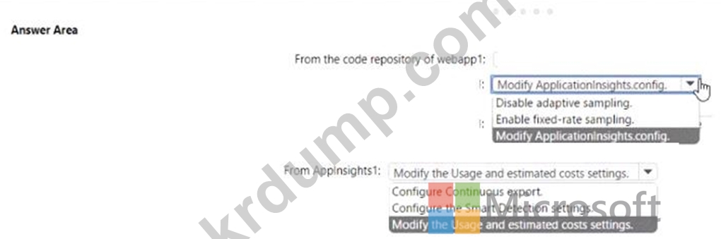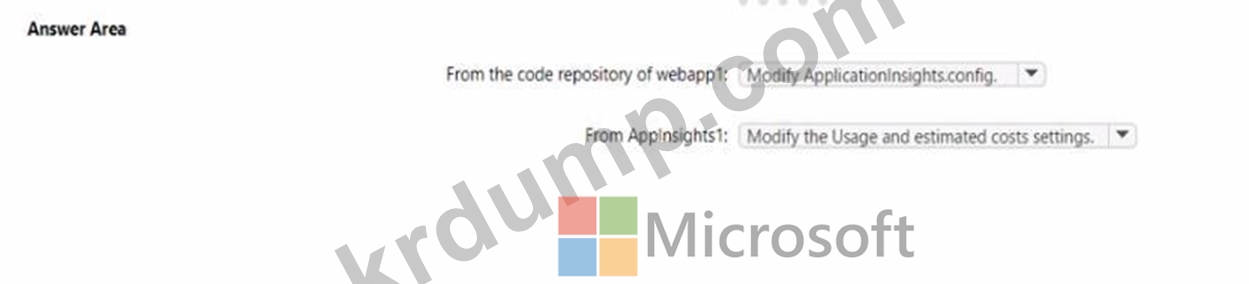 Applnsights1에서 처리하는 원격 측정 데이터의 샘플링 속도를 수정해야 하며, 수정할 때마다 webapp1을 다시 배포할 필요가 없습니다.