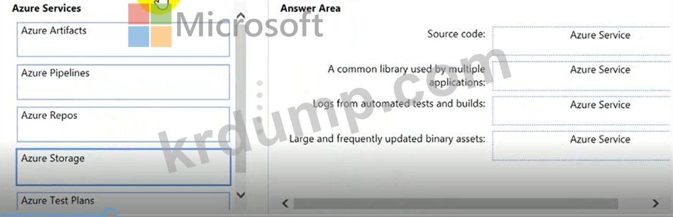 각 자산을 어디에 저장해야 할까요? 정답은 해당 Azure 서비스를 해당 자산으로 끌어다 놓는 것입니다. 각 서비스는 한 번만 사용할 수 있습니다. 콘텐츠를 보려면 창 사이의 분할 막대를 끌어다 놓거나 스크롤해야 할 수도 있습니다.
