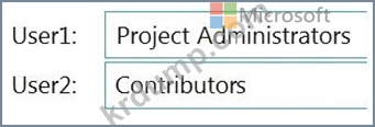 Azure DevOps에 개인 프로젝트가 있고 User1과 User2라는 두 사용자가 있습니다.