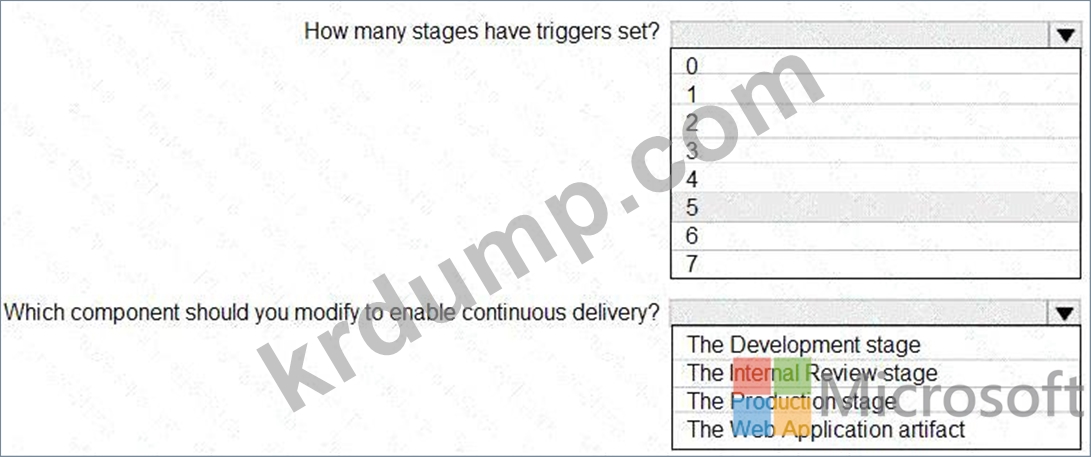 Azure DevOps에 릴리스 파이프라인이 포함된 프로젝트가 있습니다. 파이프라인에는 QA와 Prod라는 두 단계가 있습니다. QA는 webapp1이라는 Azure 웹앱에 코드를 배포하고, Prod는 webapp2라는 Azure 웹앱에 코드를 배포합니다.