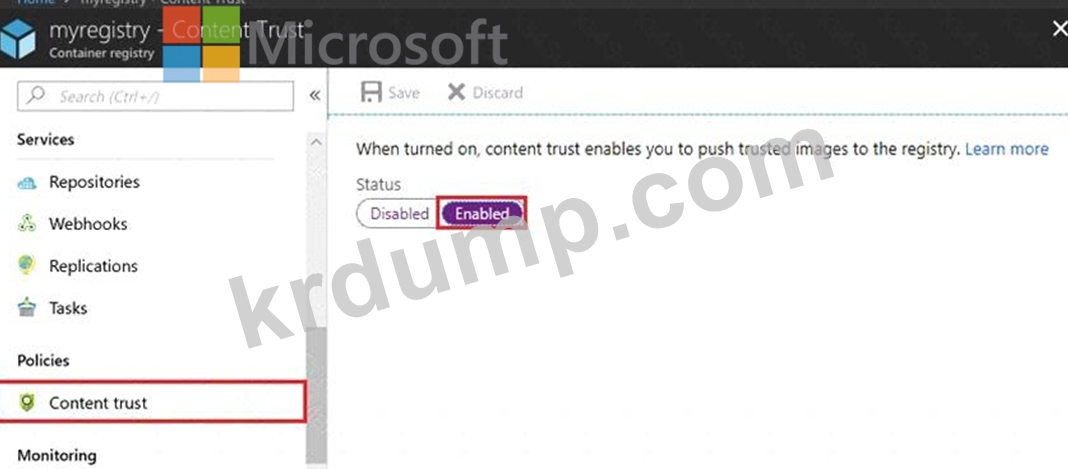 서명된 이미지를 az4009940427acr1이라는 Azure Container Registry 인스턴스에 저장하려고 합니다.