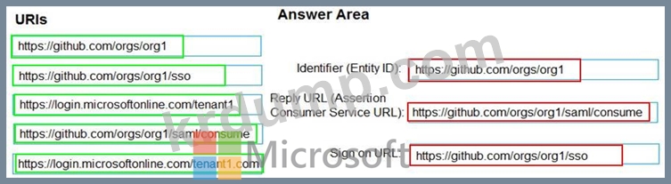 Azure AD에서 SAML 구성에 어떤 URI를 사용해야 할까요? 답을 얻으려면 해당 URI를 올바른 설정으로 끌어다 놓으세요. 각 URI는 한 번, 여러 번 또는 전혀 사용되지 않을 수 있습니다. 콘텐츠를 보려면 창 사이의 분할 막대를 끌어다 놓거나 스크롤해야 할 수도 있습니다.