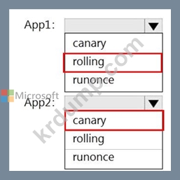 각 앱에 대해 YAML 전략 값을 구성해야 합니다. 솔루션은 앱 다운타임을 최소화해야 합니다.