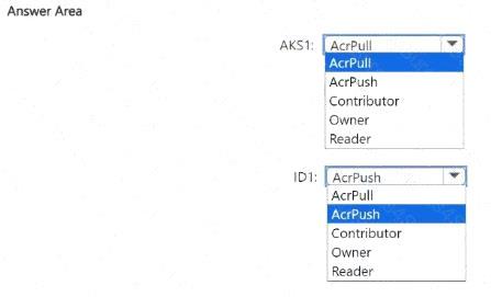 You need to configure the AKS1 and ID1 managed identities to meet the technical requirements. The solution must follow the principle of least privilege.