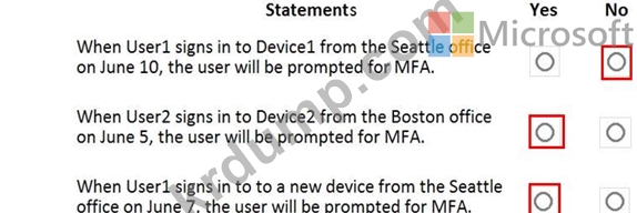 Contoso에는 contoso.com이라는 Azure AD(Azure Active Directory) 테넌트가 있습니다. 모든 contoso.com 사용자는 Azure MFA(Multi-Factor Authentication)를 사용하도록 설정했습니다. 테넌트에는 다음 표에 표시된 사용자가 포함됩니다.