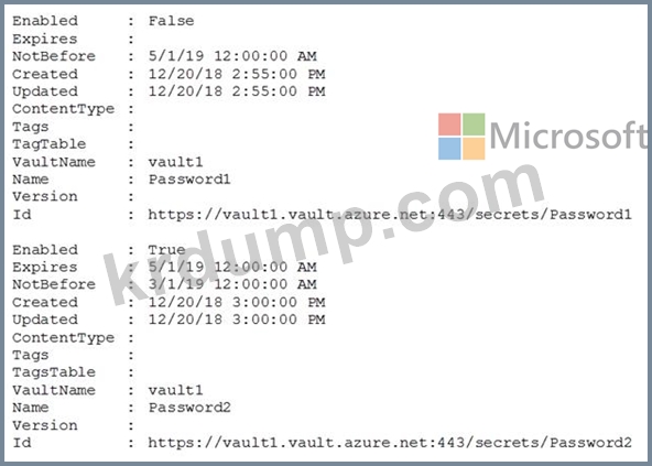 2019년 1월 1일에 Vault1은 다음 비밀을 저장합니다.