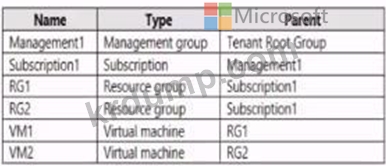 각 구독에는 RG1이라는 리소스 그룹이 포함되어 있습니다.