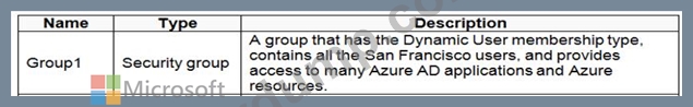 다음 표에 표시된 사용자를 포함하는 contoso.com이라는 Azure AD(Azure Active Directory) 테넌트가 있습니다.