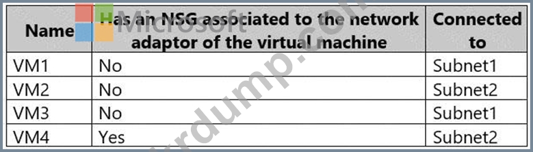 가상 네트워크가 포함된 Azure 구독이 있습니다. 가상 네트워크에는 다음 표에 표시된 서브넷이 포함됩니다.