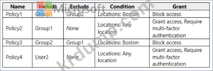 다음 표에 표시된 사용자를 포함하는 Azure AD(Azure Active Directory) 테넌트가 있습니다.