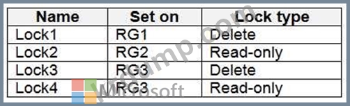 다음 표에 표시된 리소스 잠금을 생성합니다.