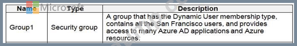 IT 팀의 모든 구성원을 포함하는 Group1이라는 Azure AD(Azure Active Directory) 그룹이 있습니다.