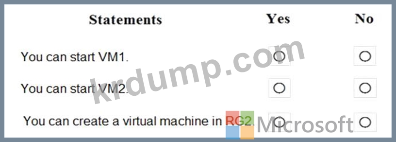 contosos.com이라는 Azure Active Directory(Azure AD) 테넌트와 RG1이라는 리소스 그룹을 포함하는 Subcription1이라는 Azure 구독이 있습니다.