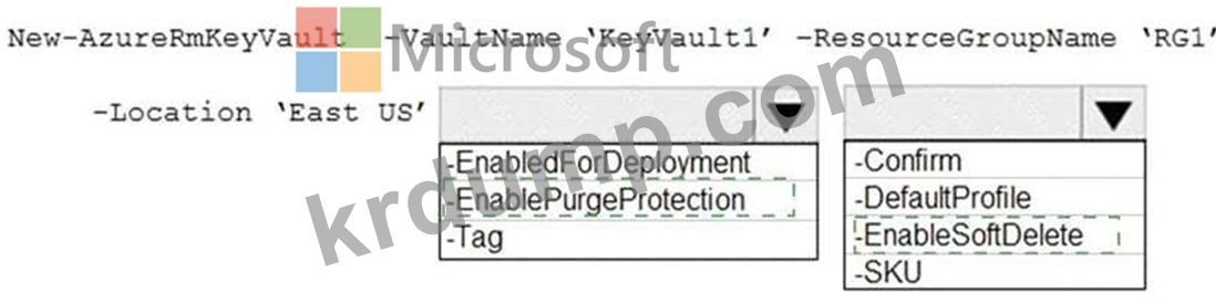 Azure 키 자격 증명 모음을 만들어야 합니다. 솔루션은 키 자격 증명 모음에서 삭제된 모든 개체가 90일 동안 유지되도록 해야 합니다.