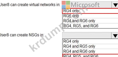 User8은 어떤 리소스 그룹에서 가상 네트워크와 NSG를 만들 수 있습니까? 응답하려면 응답 영역에서 적절한 옵션을 선택하십시오.
