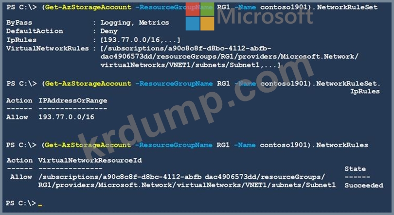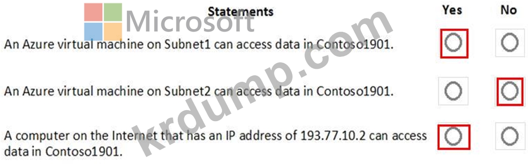 Subnet1 및 Subnet2에는 Microsoft.Storage 서비스 끝점이 구성되어 있습니다.