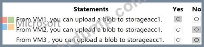 다음 전시에 표시된 대로 구성된 storageacc1이라는 Azure Storage 계정이 있습니다.