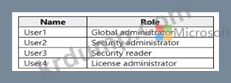 contoso.com이라는 Azure AD(Azure Active Directory) 테넌트와 연결된 Sub 1이라는 Azure 구독이 있습니다. 테넌트는 다음 표에 표시된 사용자를 포함합니다.
