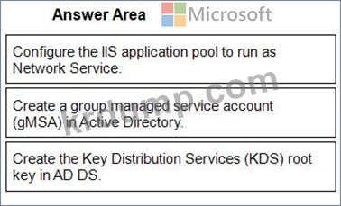 Webapp1에 대한 보안 요구 사항을 충족하려면 어떤 세 가지 작업을 순서대로 수행해야 합니까? 응답하려면 조치 목록에서 해당 조치를 응답 영역으로 이동하고 올바른 순서로 정렬하십시오.