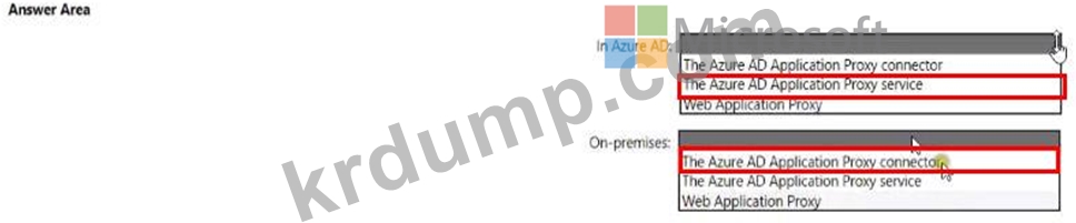 Vou에는 Azure AD(Azure Active Directory) 테넌트와 동기화되는 온-프레미스 AD DS} 도메인이 있습니다. Kerberos 인증만 지원하는 WebApp1이라는 온-프레미스 웹 앱이 있습니다.