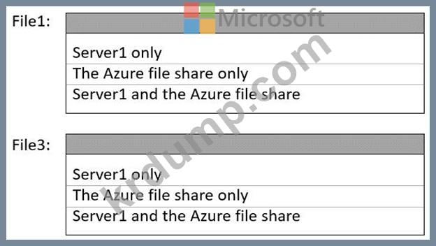 Azure 파일 동기화를 사용하여 Server1이라는 온-프레미스 서버에서 Azure로 파일을 동기화해야 합니다.