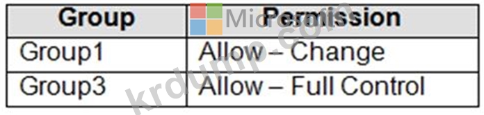 Share1에 대한 공유 권한은 다음 표에 나와 있습니다.