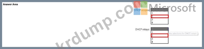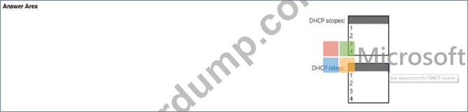 생성해야 하는 최소 범위 및 DHCP 릴레이 수는 얼마입니까? 응답하려면 응답 영역에서 적절한 옵션을 선택하십시오.