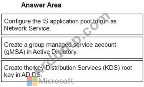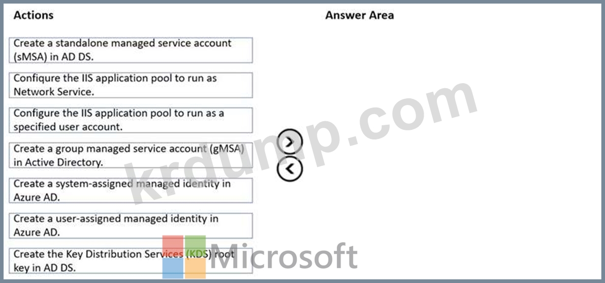 Webapp1의 보안 요구 사항을 충족하려면 어떤 세 가지 작업을 순서대로 수행해야 합니까? 응답하려면 조치 목록에서 해당 조치를 응답 영역으로 이동하고 올바른 순서로 정렬하십시오.