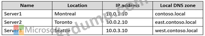 솔루션: DNS 요청을 10.0.1.10으로 전달하도록 Server2 및 Server3을 구성합니다.