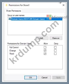 도메인에는 'Server1이라는 서버와 User1이라는 세 명의 사용자가 있습니다. User2 및 User), Server1에는 Share1 tha1이라는 공유 폴더가 포함되어 있으며 구성은 다음과 같습니다.