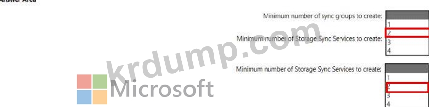 파일 공유 요구 사항을 충족하려면 Azure 파일 동기화를 구성해야 합니다. 당신은 무엇을해야합니까? 답변하려면 답변에서 적절한 옵션을 선택하십시오. 참고 각 올바른 선택은 1점의 가치가 있습니다.