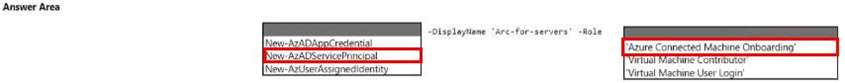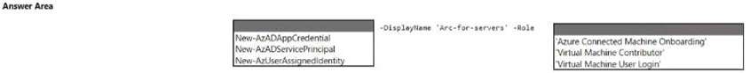 Azure Arc 배포 스크립트를 실행하여 온-프레미스 가상 머신을 Azure Arc에 온보딩할 계획입니다. sub1에 대한 액세스를 인증하기 위해 스크립트에서 사용할 ID를 만들어야 합니다. 솔루션은 최소 권한 원칙을 사용해야 합니다.