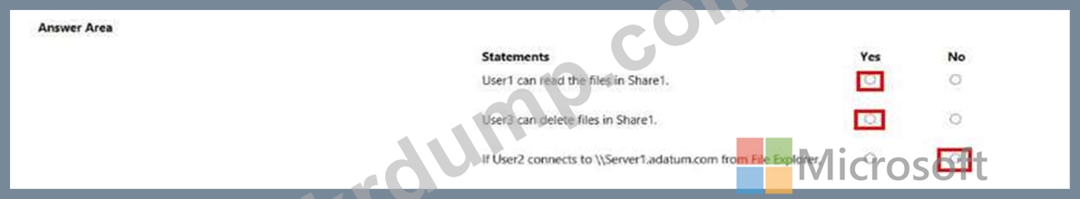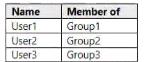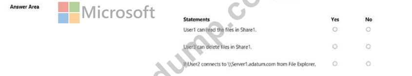 네트워크에 adatum.com이라는 AD DS(Active Directory 도메인 서비스) 도메인이 포함되어 있습니다. 도메인에는 Server1이라는 서버와 다음 표에 표시된 사용자가 포함되어 있습니다.