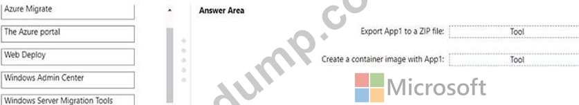 Appl이라는 웹 앱을 호스팅하는 온-프레미스 IIS 웹 서버가 있습니다. App1을 컨테이너로 마이그레이션하고 Azure에서 컨테이너를 실행할 계획입니다. 다음 작업을 수행해야 합니다.