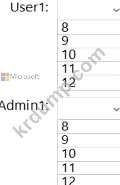 User1 및 Admin1의 유효 최소 암호 길이는 얼마입니까? 응답하려면 응답 영역에서 적절한 옵션을 선택하십시오.