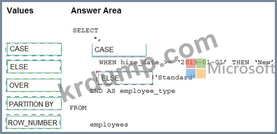 Transact-SQL 문을 어떻게 완성해야 합니까? 응답하려면 적절한 값을 올바른 대상으로 드래그하십시오. 각 값은 한 번, 두 번 이상 또는 전혀 사용되지 않을 수 있습니다. 콘텐츠를 보려면 창 사이의 분할 막대를 드래그하거나 스크롤해야 할 수 있습니다.