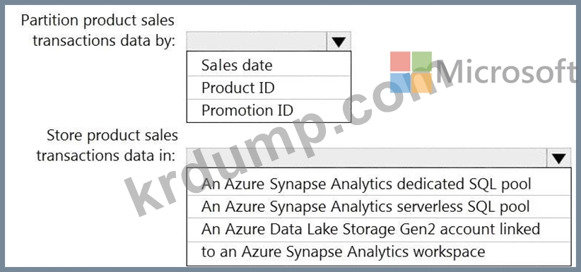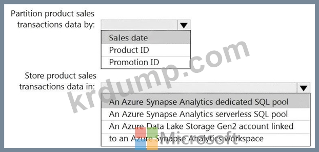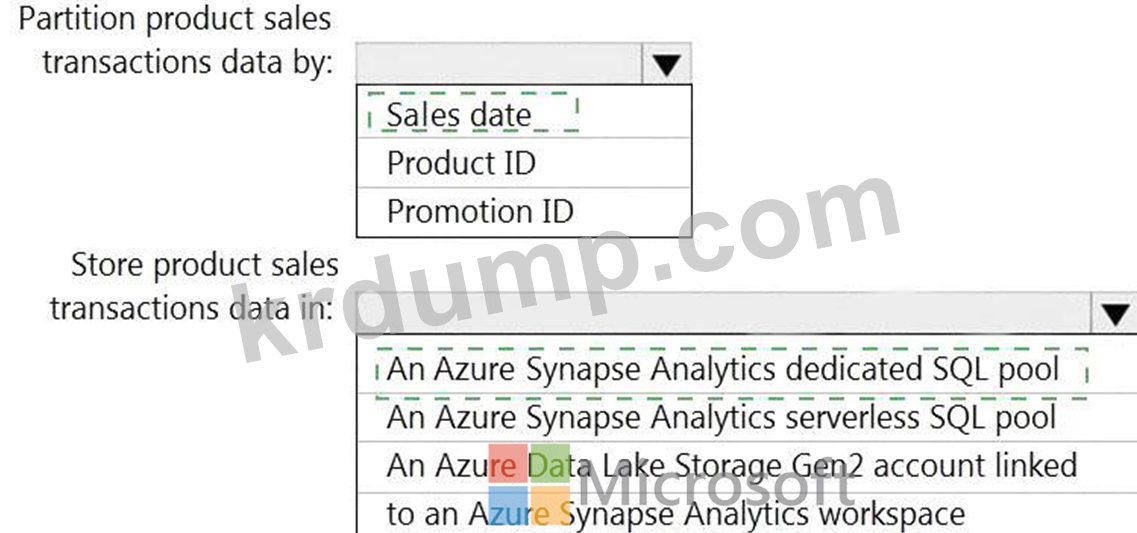 제품 판매 트랜잭션에 대한 파티션을 설계해야 합니다. 솔루션은 판매 거래 데이터 세트 요구 사항을 충족해야 합니다.