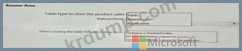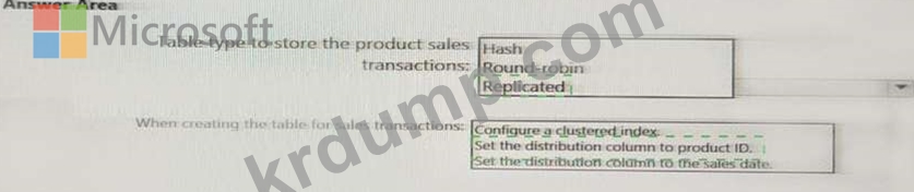 제품 판매 트랜잭션에 대한 데이터 저장 구조를 설계해야 합니다. 솔루션은 판매 거래 데이터 세트 요구 사항을 충족해야 합니다.