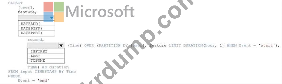 사용자가 웹 페이지의 기능과 상호 작용하는 데 소비하는 시간을 식별하기 위해 Azure Stream Analytics 작업을 빌드하고 있습니다.