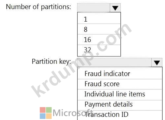 각 거래에는 거래 ID, 개별 항목 및 결제 세부정보가 포함됩니다. 트랜잭션 ID는 파티션 키로 사용됩니다.